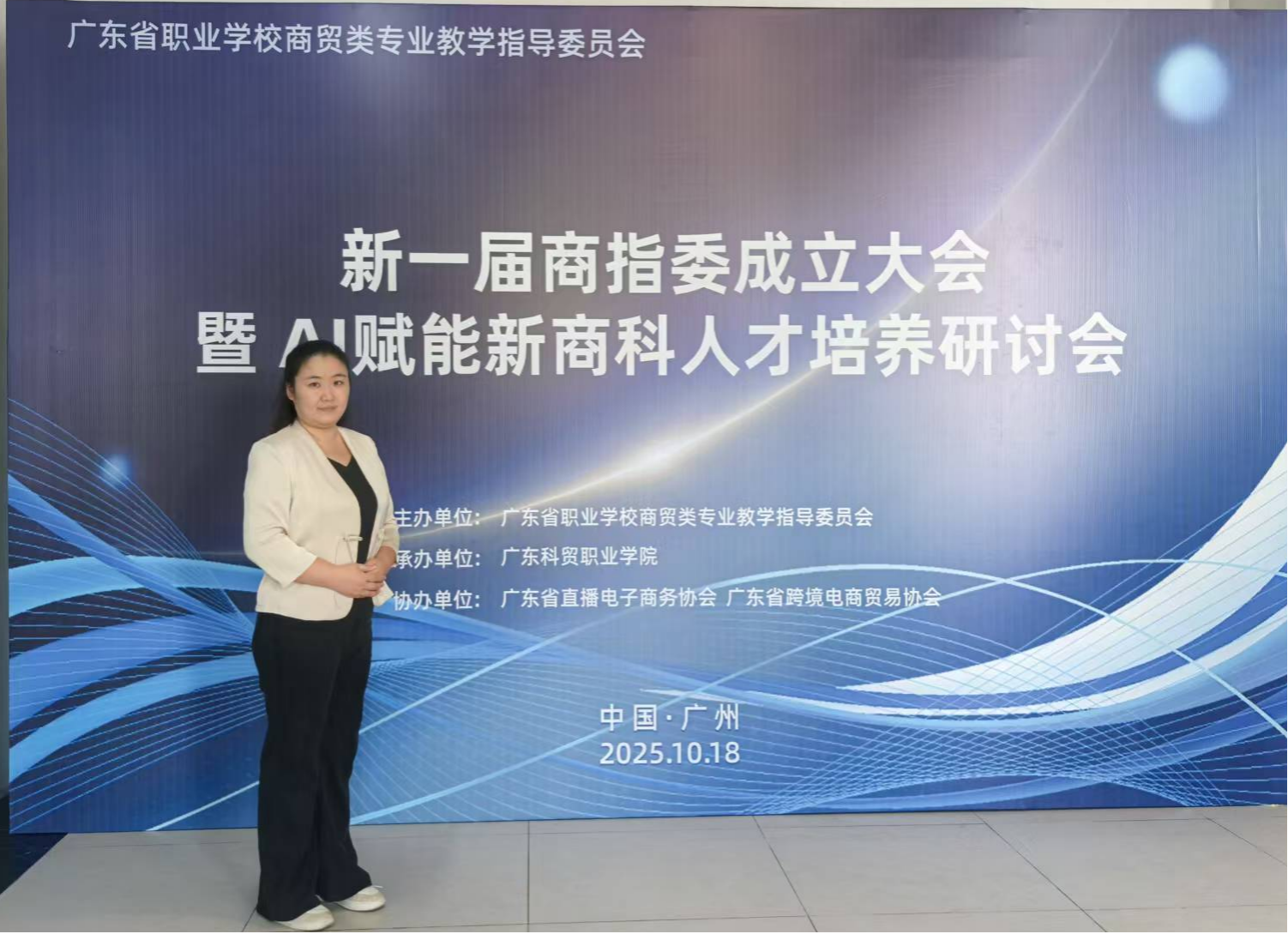 10月18日,经济与管理学院营销与管理教研室副主任解心受邀参加“新一届商指委成立大会暨AI赋能新商科人才培养研讨会”。会议由广东省职业学校商贸类专业教学指导委员会主办、广东科贸职业学院承办,以“AI赋能产教深融”为主题,汇聚全省职业学校相关院系负责人、专业带头人及行业专家,深入探讨数字化转型背景下新商科人才培养的创新路径。