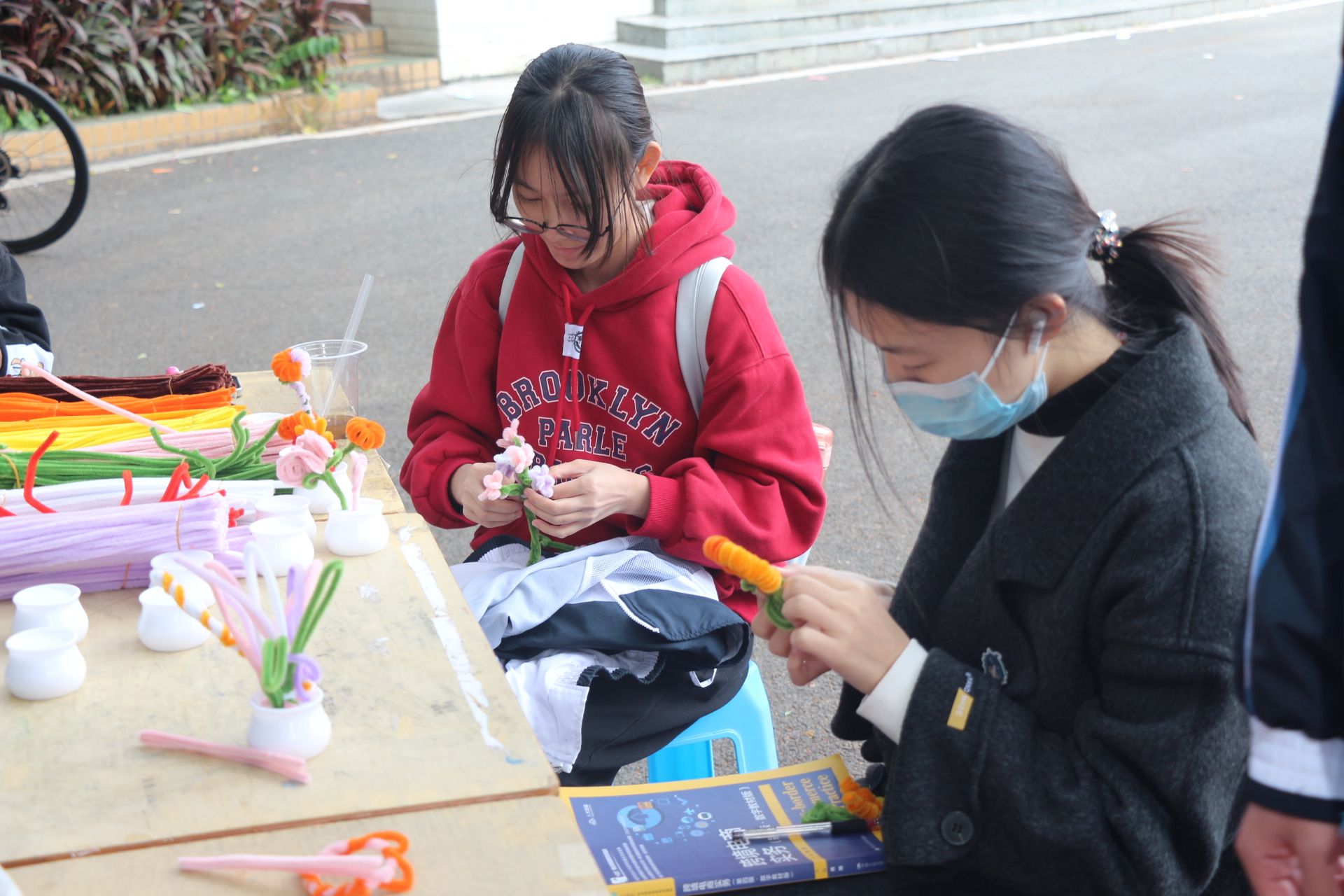 在活动现场,摊位布置氛围温馨,主题展区特色鲜明。“心声邮局”前,同学们执笔书写真挚谢意,将平时深藏心底的感谢凝于笔端,投递至“感恩信箱”,等待“暖心信使”完成温暖的传递。“指尖感恩”区域则充满专注与创造,学生们亲手将扭扭棒制成独具意义的小花,让抽象情感化为可触可感的实物礼物。