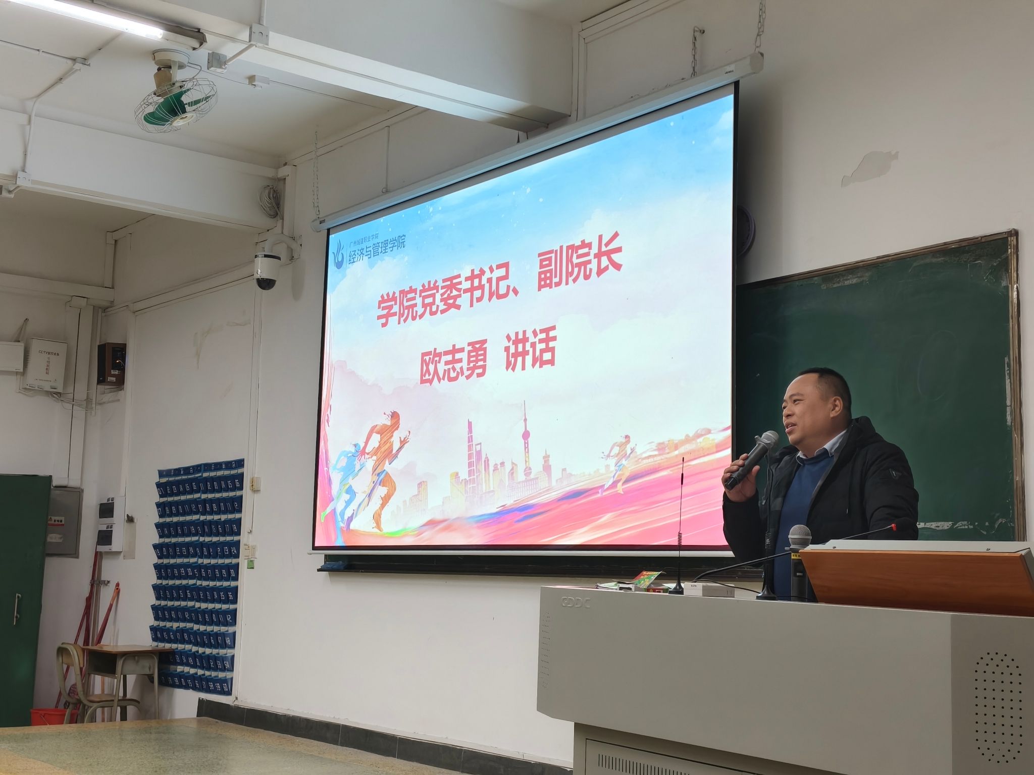 12月15日晚,经济与管理学院于人文艺术楼126课室召开2025年广东省学生体质健康抽测工作动员大会。院长沈华艳、学院党委书记兼副院长欧志勇出席会议,学院全体2025级辅导员以及即将参加抽测的330名学生代表参会,大会由朱咏娟老师主持。