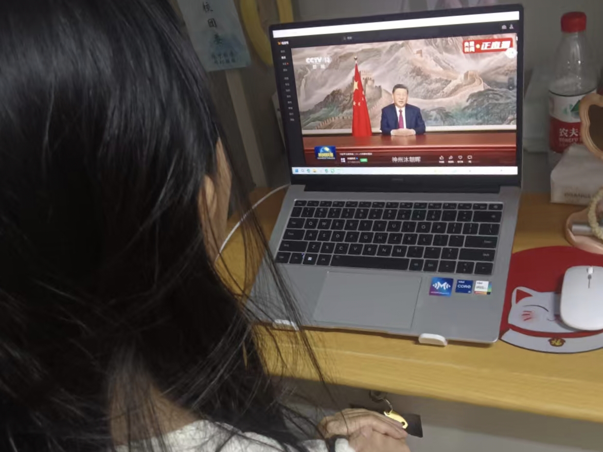 支部预备党员李同学说:“观看习近平总书记2026年新年贺词,我倍感振奋与责任。贺词中“140万亿元经济总量”的亮眼成绩、科技创新的蓬勃活力,以及“为梦想奋斗、为幸福打拼”的殷切号召,让我深切感受到个人奋斗与国家发展同频共振的力量。”