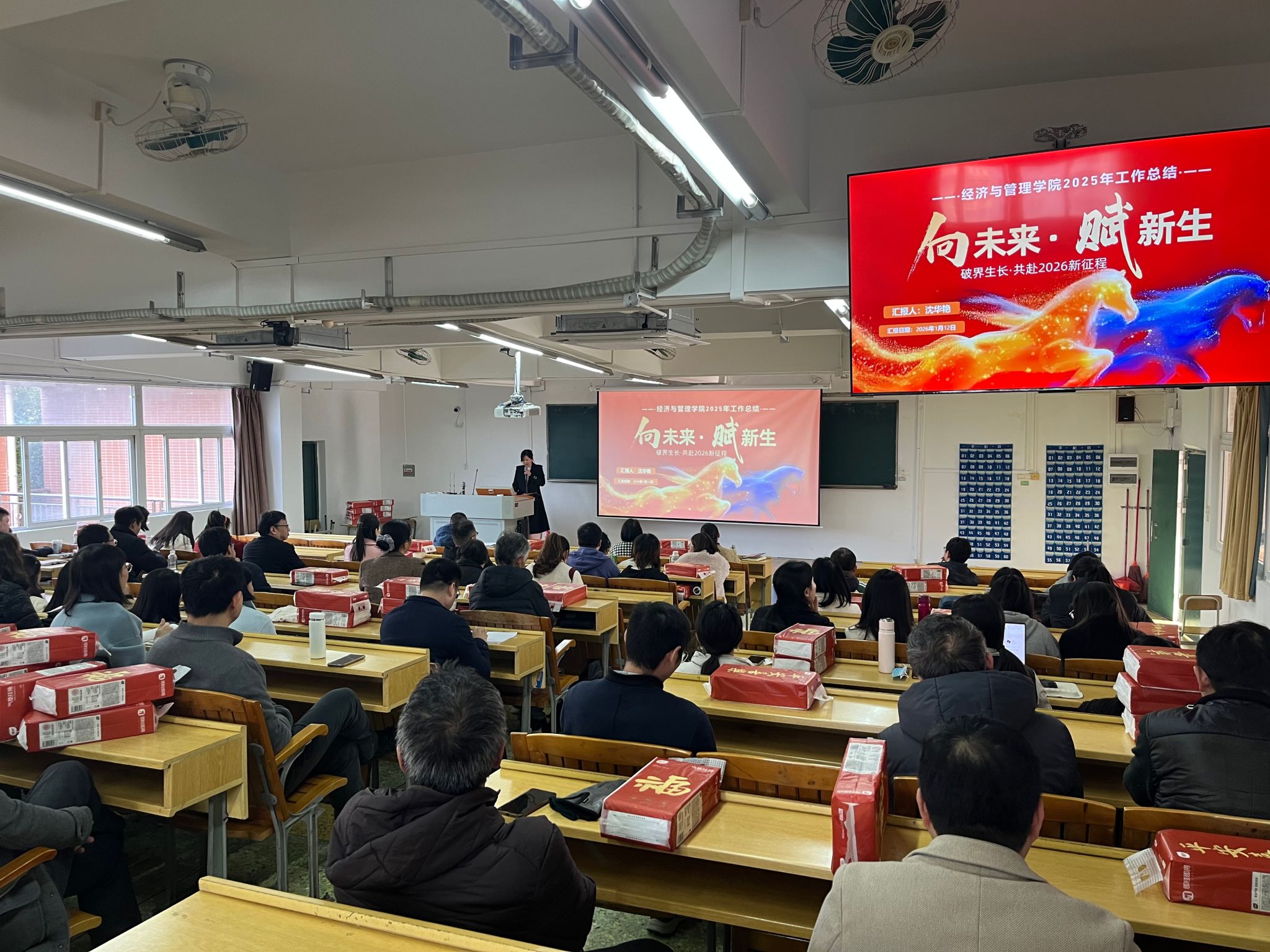 此次会议的召开,既全面回顾了2025年的奋斗历程,也为2026年的发展指明了清晰路径。全体教职工备受鼓舞、干劲十足,纷纷表示将以更加饱满的热情、更加务实的作风,凝心聚力、笃行实干,为学院高质量发展贡献力量,共同书写经济与管理学院更加辉煌的明天。