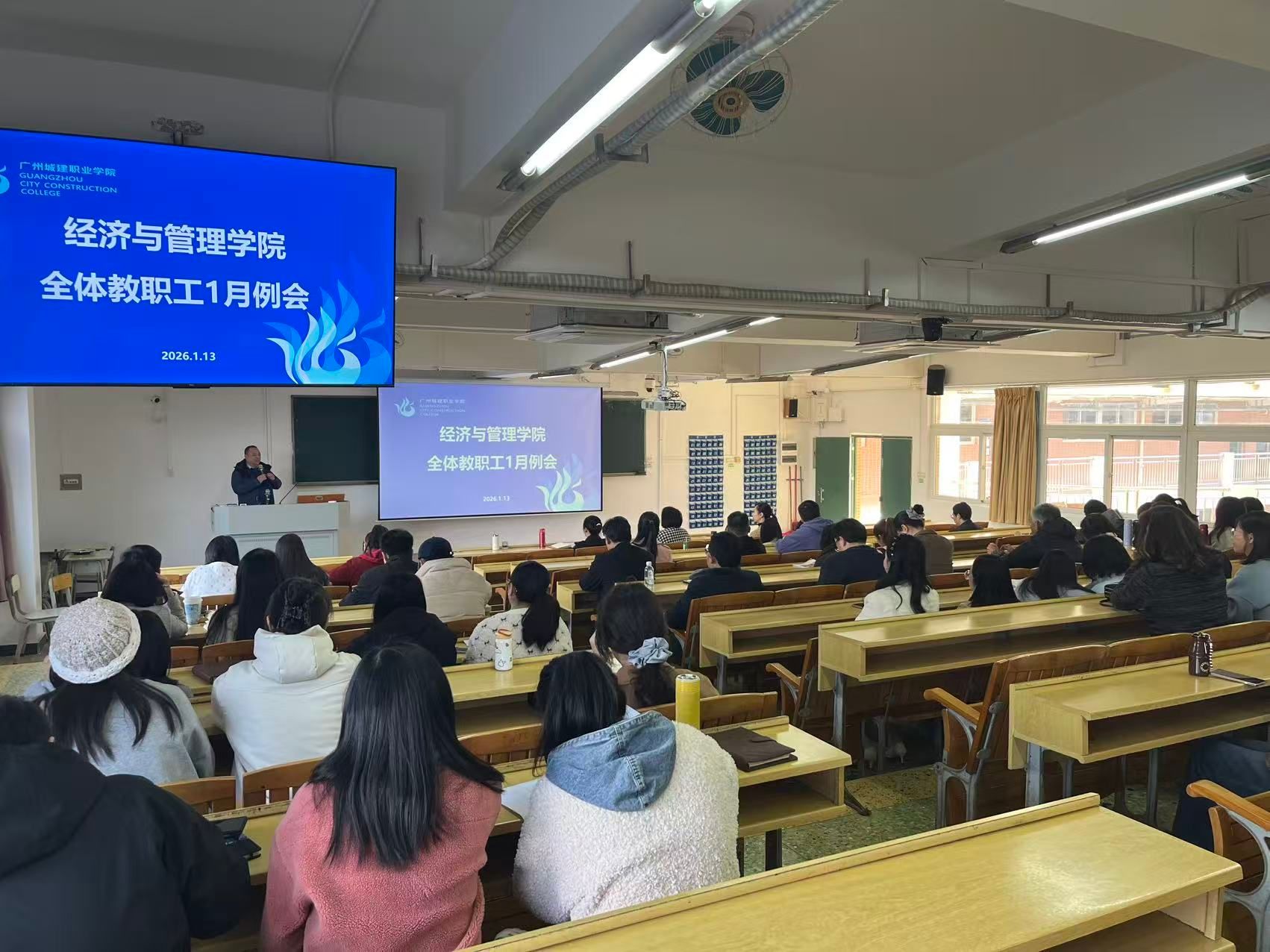 为全面总结2025年学院各项工作成效,精准部署2026年发展任务,2026年1月12日下午,经济与管理学院在人文艺术楼1526召开1月全体教职工会议,学院院长沈华艳,副院长刘静、张珊及全体教职工出席会议,学院党委书记、副院长欧志勇主持会议。