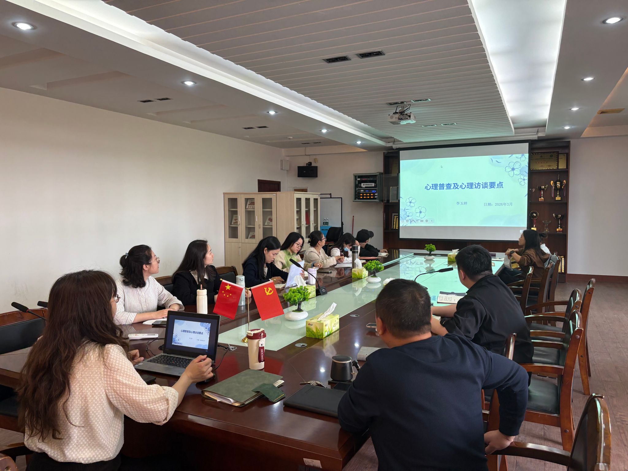 会上,李玉婷传达了学校心理普查工作安排。她指出,心理普查是掌握学生心理状态、及时发现问题的基础性工作,访谈应以“建立关系、收集信息、评估状态”为目的,通过耐心倾听和科学评估,准确了解学生状况,为后续分类帮扶提供依据。