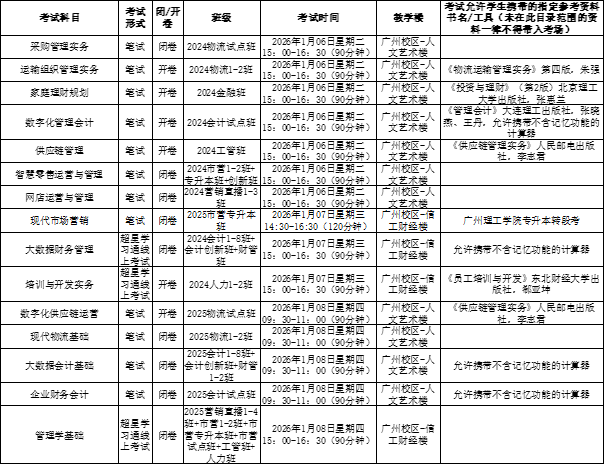 考试时间:具体考试时间如下,具体考试安排请详见《附件1:经济与管理学院2025-2026学年第一学期期末考试安排表》。