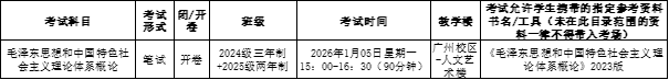 公共基础课程: 2024级三年制/2025级两年制《毛泽东思想和中国特色社会主义理论体系概论》共1门公共课列入本学期期末统考科目。