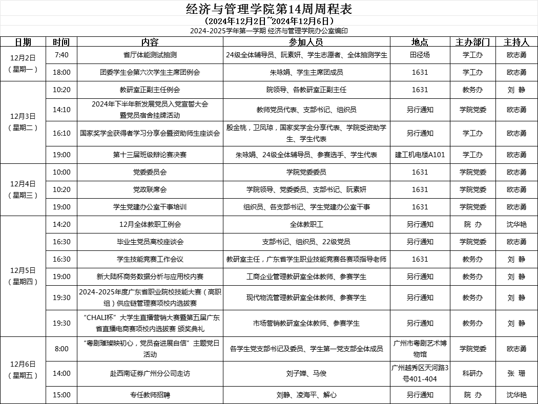 【2024-2025-1】经济与管理学院第14周周程表