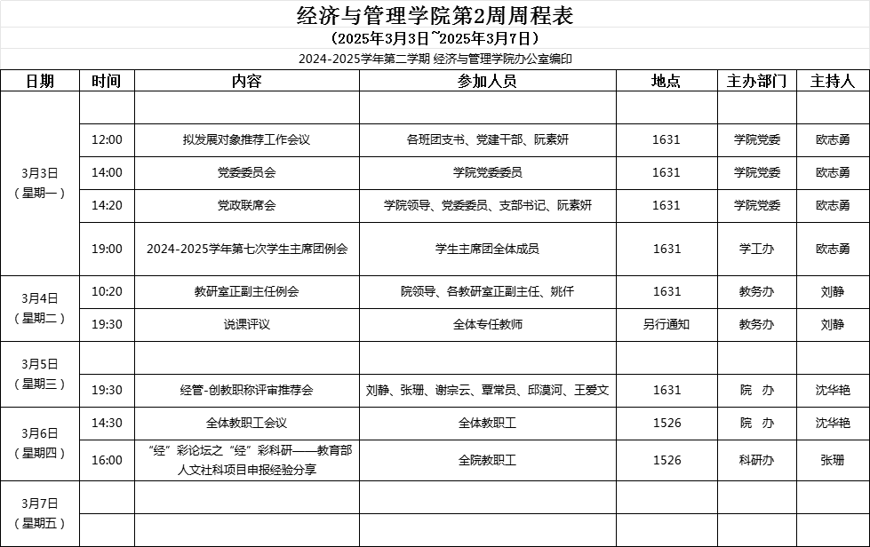 【2024-2025-2】经济与管理学院第3周周程表