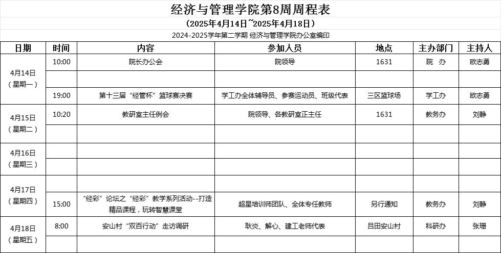 【2024-2025-2】经济与管理学院第8周周程表