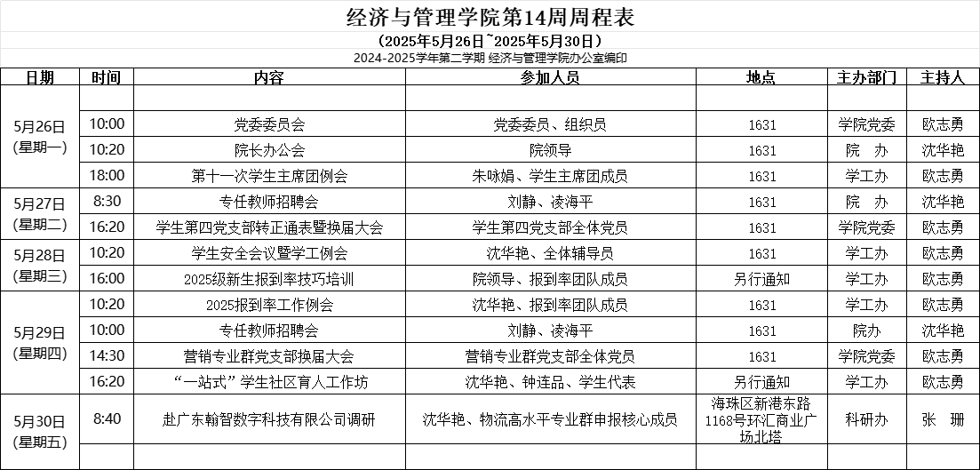 【2024-2025-2】经济与管理学院第14周周程表