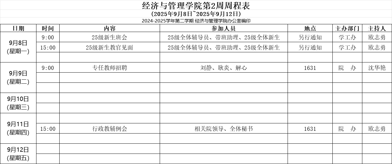 【2025-2026-1】经济与管理学院第2周周程表
