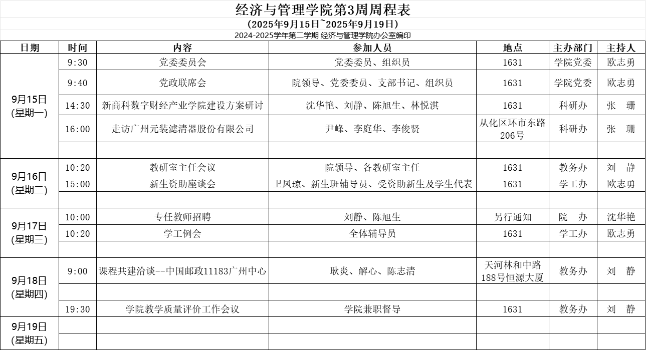 【2025-2026-1】经济与管理学院第3周周程表