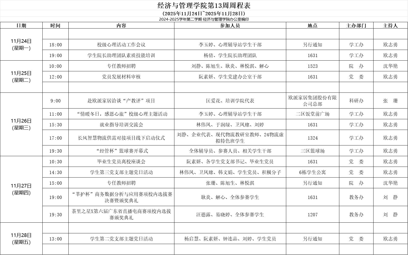 【2025-2026-1】经济与管理学院第12周周程表