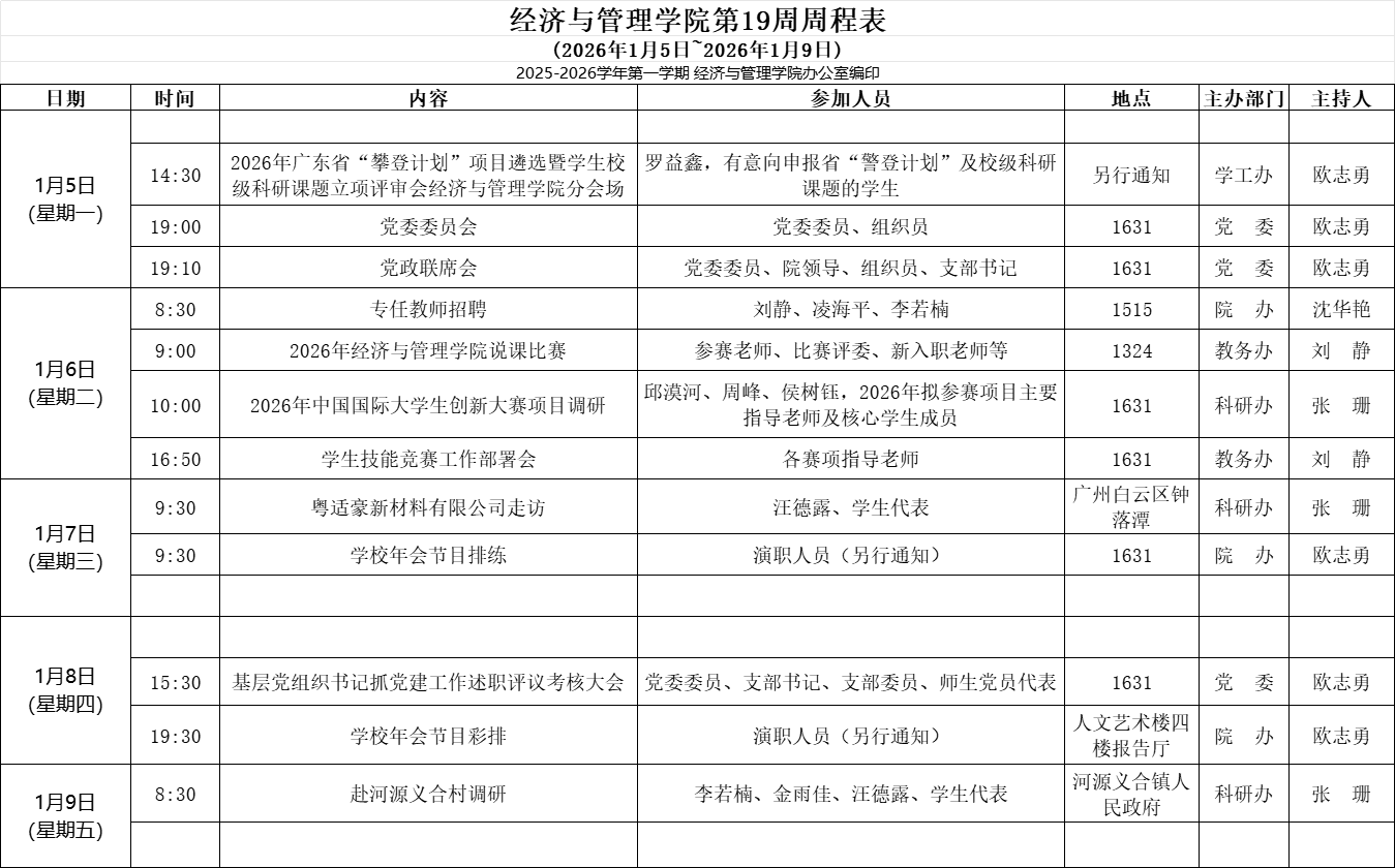 【2025-2026-1】经济与管理学院第19周周程表