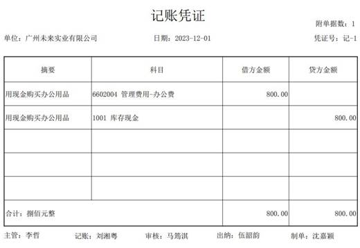 2.凭证:2023 年 12 月份经济业务账务处理。如图2所示。