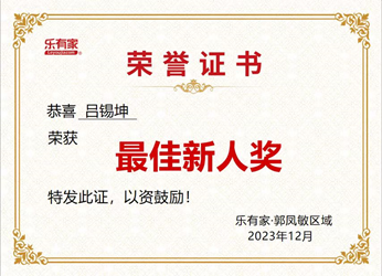 (吕锡坤在收到单位最佳新人奖时发表的感言) (最佳新人奖的奖状)