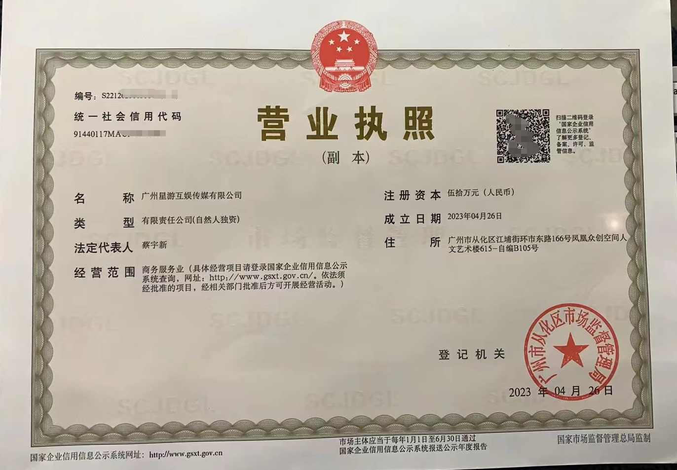 我是一名人力资源管理专业24届毕业生,2023年在广州市创立广州星游互娱传媒有限公司,担任董事长职位。